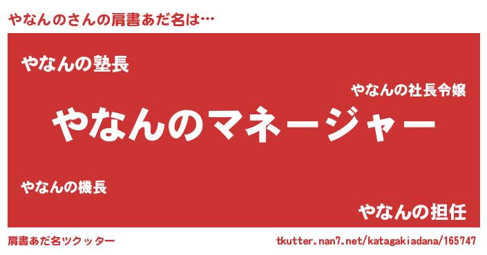 | ポケモン風あだ名 | 『ヤナゴンZ』『ヒヤナンノ』 |