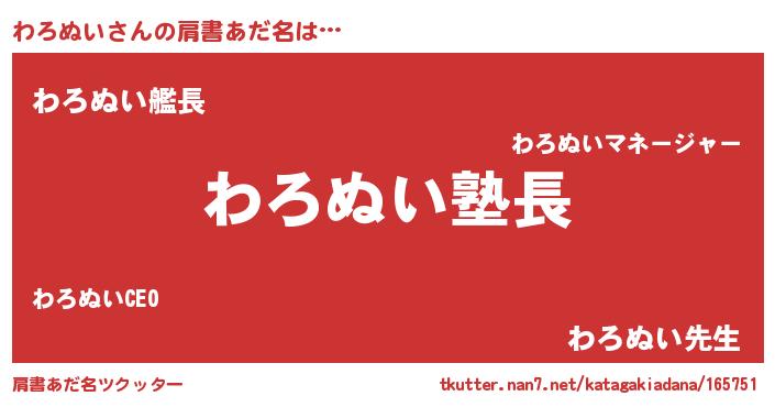 | 女子向けラノベタイトル風あだ名 | 『わろぬいは平凡を望む』 |