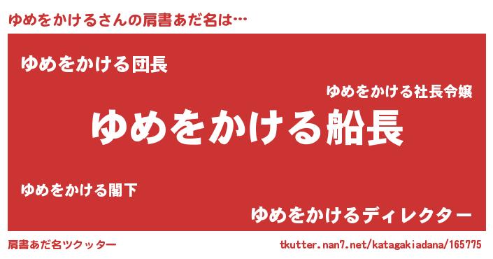 | ヒーロー風カッコイイあだ名 | 『天弓騎士ユメ』『スーパーユメヲカケル』 |