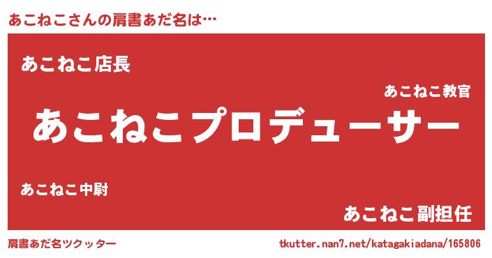 | 男性向けラノベタイトル風あだ名 | 『あこねこに滅ぼされるだけの簡単なお仕事です』 |