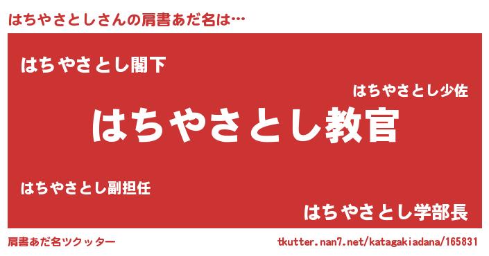 | ヘコむあだ名 | 『はちやさとし(苦笑)』『はちにー』 |