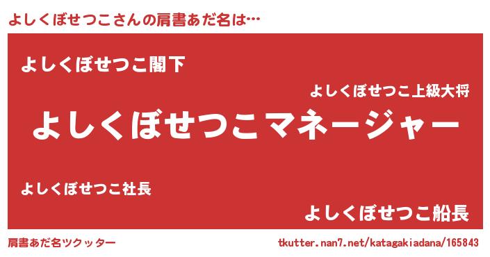 | 意味不明あだ名 | 『自称よしくぼせつこ』 |