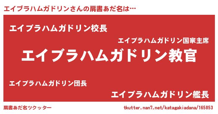 | 意味不明あだ名 | 『住所不定無職エイブラハムガドリン(13歳)』 |