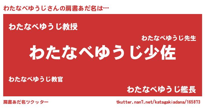 | 女子向けラノベタイトル風あだ名 | 『わたなべゆうじの玉の輿計画!』 |