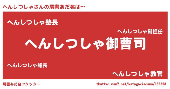 | ポケモン風あだ名 | 『ヘンチュウ』『ヒヘンシツシャ』 |