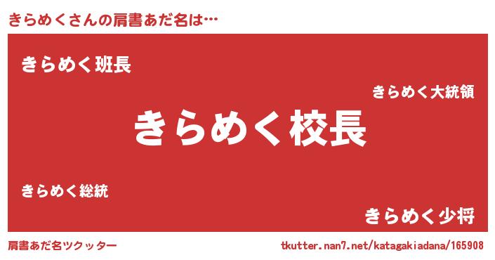 | 意味不明あだ名 | 『永久保存きらめく』『自称きらめく』 |