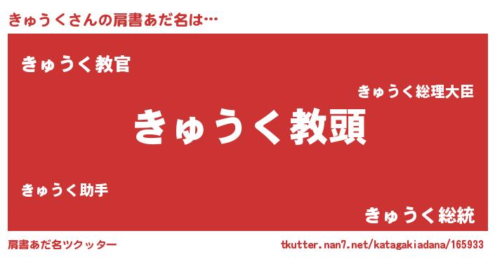 | 胡散臭い通販商品みたいなあだ名 | 『絶対に幸福をもたらす健康食品…その名も「きゅうく」』 |