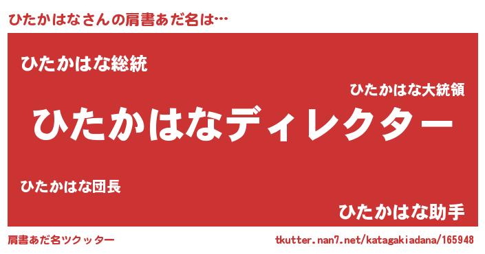 | ヒーロー風カッコイイあだ名 | 『究極戦士ヒタカハナ』『黄金騎士ヒタ』 |