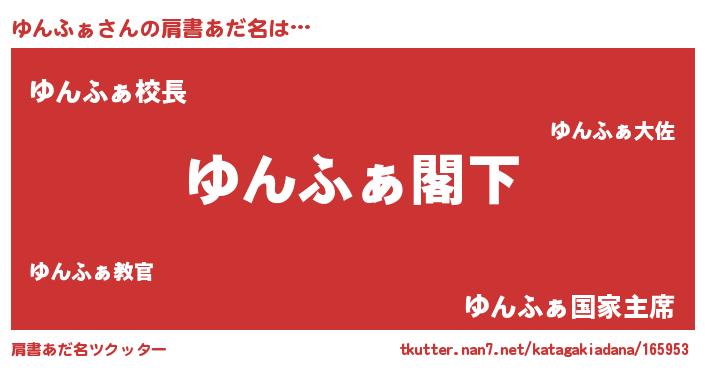 | 女子向けラノベタイトル風あだ名 | 『ゆんふぁなんてお断りですっ。』 |