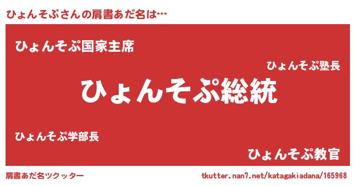 | 男性向けラノベタイトル風あだ名 | 『Re:ひょんそぷから始める異世界生活』 |