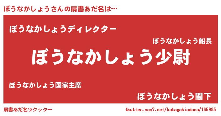 | 男性向けラノベタイトル風あだ名 | 『ボウナカショウスレイヤー』 |