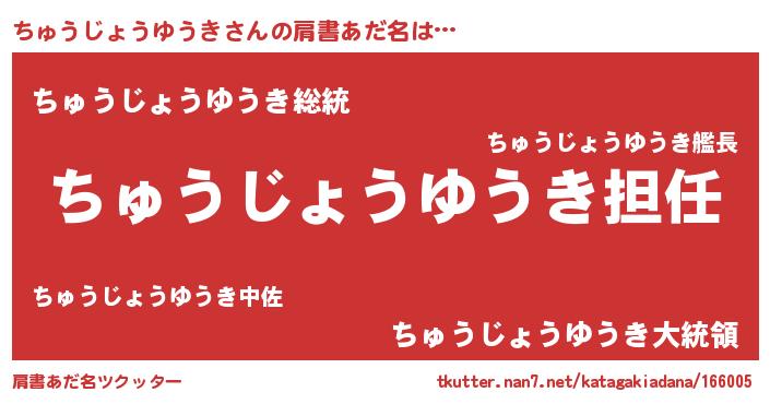| 男性向けラノベタイトル風あだ名 | 『ちゅうじょうゆうきという概念が存在しない退屈な世界 』 |