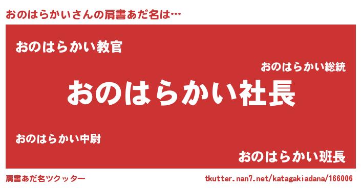 | 胡散臭い通販商品みたいなあだ名 | 『モテモテ間違いなしブレスレット…その名も「おのはらかい」』 |