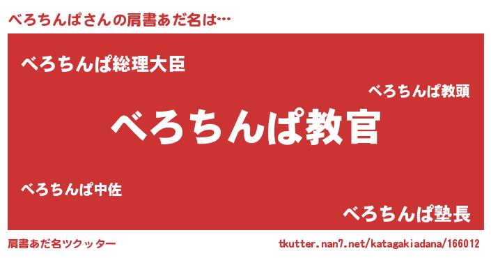 | 意味不明あだ名 | 『住所不定無職べろちんぱ(50歳)』 |