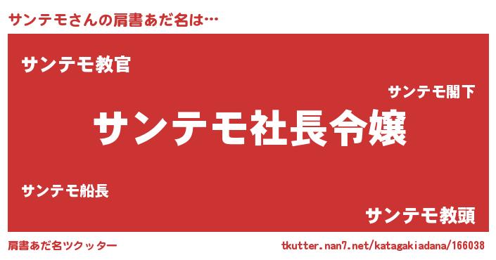 | 男性向けラノベタイトル風あだ名 | 『サンテモの憂鬱』『魔弾の王とサンテモ』 |