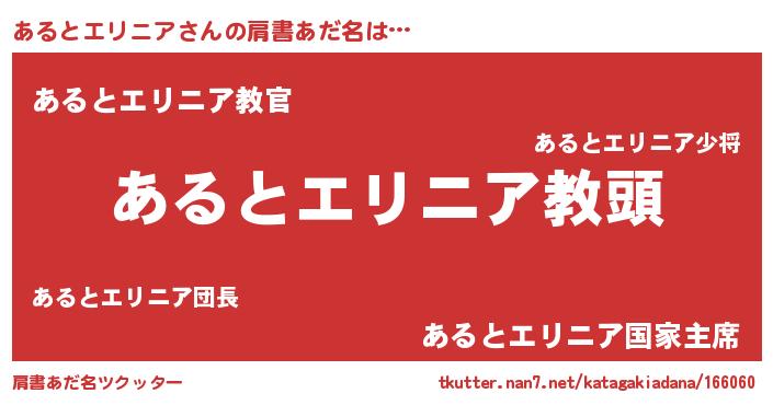 | 胡散臭い通販商品みたいなあだ名 | 『来世でも幸せになれる健康食品…その名も「あるとエリニア」』 |