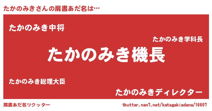 | 男性向けラノベタイトル風あだ名 | 『緋弾のタカノミキ』 |