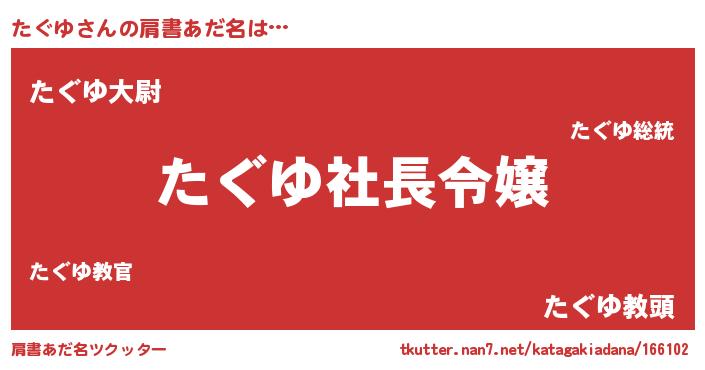 | 女子向けラノベタイトル風あだ名 | 『たぐゆ姫と円卓の騎士』 |