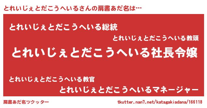 | 胡散臭い通販商品みたいなあだ名 | 『必ず成功する霊験あらたかなお札…その名も「とれいじぇとだこうへいる」』 |