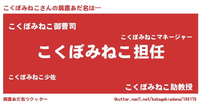 | ヘコむあだ名 | 『こくぼみねこ(震え声)』『こくっふぃ~』 |