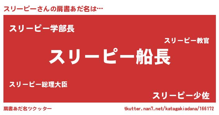 | 男性向けラノベタイトル風あだ名 | 『緋弾のスリーピー』 |
