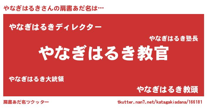 | 男性向けラノベタイトル風あだ名 | 『この素晴らしい世界にやなぎはるきを!』 |