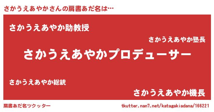 | 男性向けラノベタイトル風あだ名 | 『はたらくさかうえあやかさま!』 |