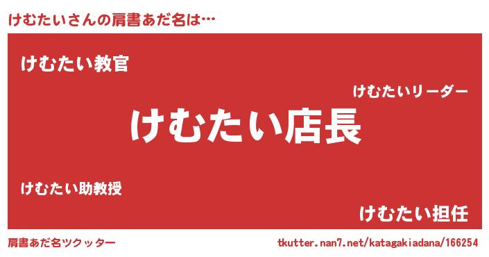 | 男性向けラノベタイトル風あだ名 | 『けむたいの憂鬱』『魔弾の王とけむたい』 |