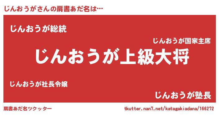 | 男性向けラノベタイトル風あだ名 | 『転生したらじんおうがだった件』 |