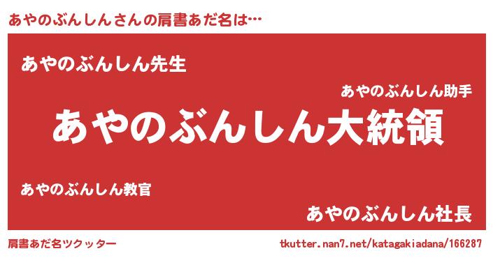 | 意味不明あだ名 | 『あやのぶんしんフォーエバー』 |