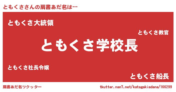 | ヒーロー風カッコイイあだ名 | 『正義の使者ともくさ』『仮面トモダー』 |
