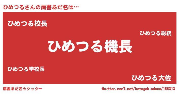 | ヒーロー風カッコイイあだ名 | 『ネオヒメツル』『サイバー戦士ヒメツル』 |