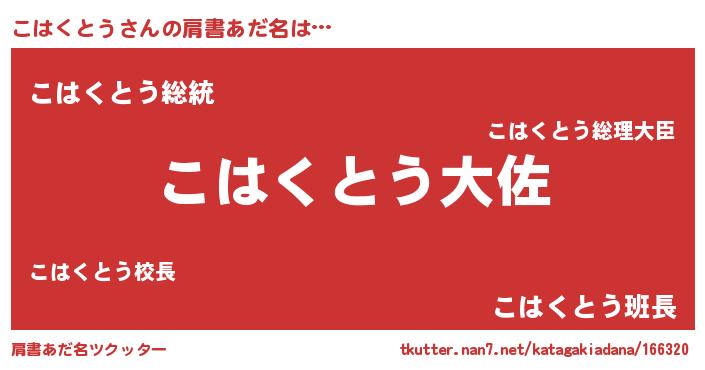 | ヘコむあだ名 | 『こはを』『なまこ酢』『こはふぇ~』 |