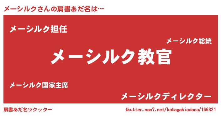 | ヒーロー風カッコイイあだ名 | 『仮面メーダー』『ネオメーシルク』 |