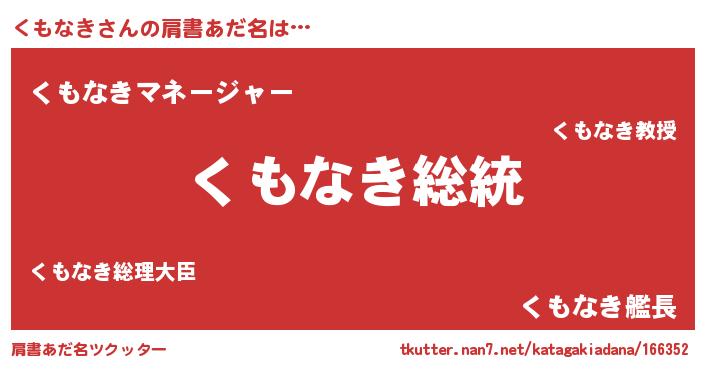 | 意味不明あだ名 | 『自称くもなき』『くもなきフォーエバー』 |
