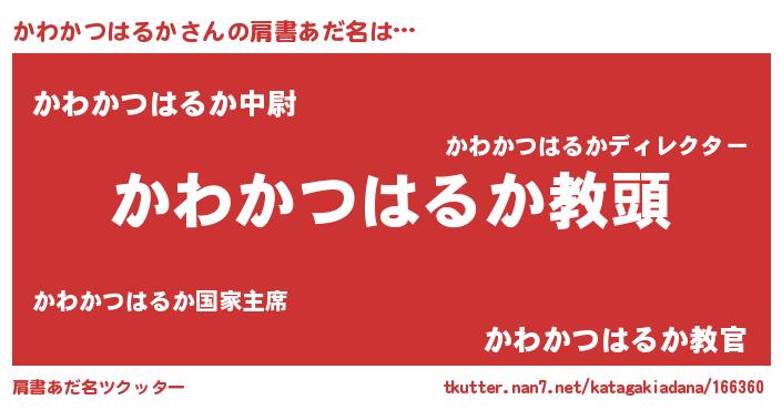 | ヘコむあだ名 | 『かわかつはるか(笑)』『豆乳』 |