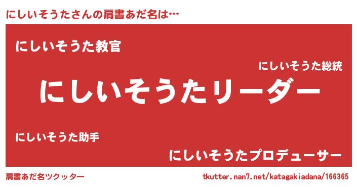 | ポケモン風あだ名 | 『ヒニシイソウタ』『ニーシイ』 |