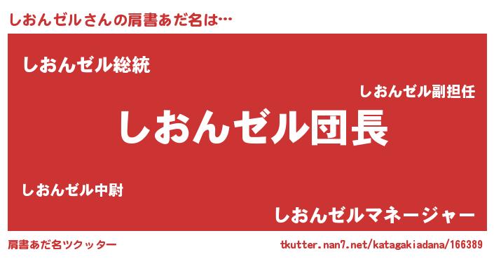| 男性向けラノベタイトル風あだ名 | 『しおんゼルの嫁は女の子じゃないと思った?』 |