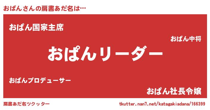 | ヒーロー風カッコイイあだ名 | 『黄金騎士オパ』『ウルトラおぱんマン』 |