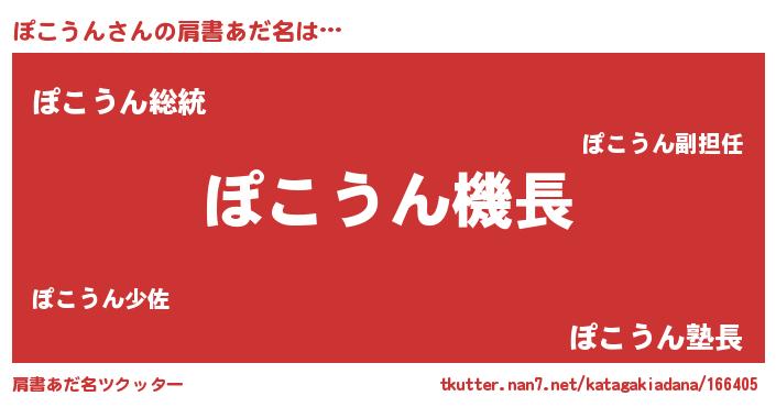 | 男性向けラノベタイトル風あだ名 | 『緋弾のポコウン』『ポコウンスレイヤー』 |