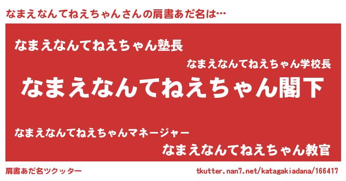 | 意味不明あだ名 | 『自称なまえなんてねえちゃん』 |