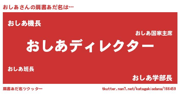 | 男性向けラノベタイトル風あだ名 | 『はたらくおしあさま!』『緋弾のオシア』 |