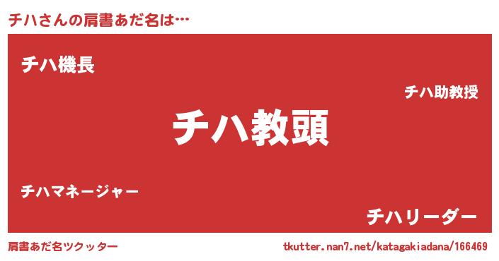 | 意味不明あだ名 | 『永久保存チハ』『とにかく怪しいチハ』 |