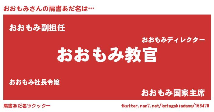 | ヒーロー風カッコイイあだ名 | 『仮面オオダー』『ネオオオモミ』 |