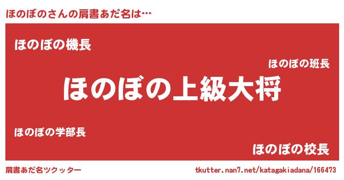 | 胡散臭い通販商品みたいなあだ名 | 『絶対に幸福をもたらす水素水…その名も「ほのぼの」』 |