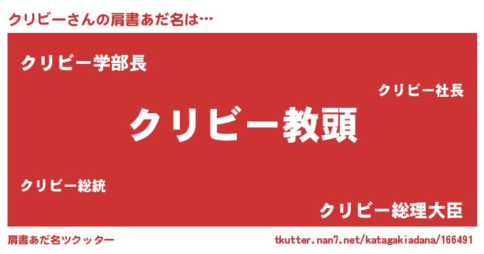| 男性向けラノベタイトル風あだ名 | 『クリビーという概念が存在しない退屈な世界 』 |