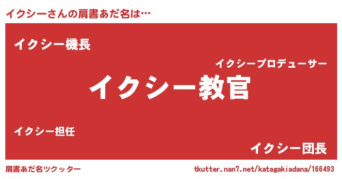 | 意味不明あだ名 | 『住所不定無職イクシー(74歳)』 |