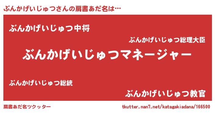 | 男性向けラノベタイトル風あだ名 | 『ぶんかげいじゅつに滅ぼされるだけの簡単なお仕事です』 |