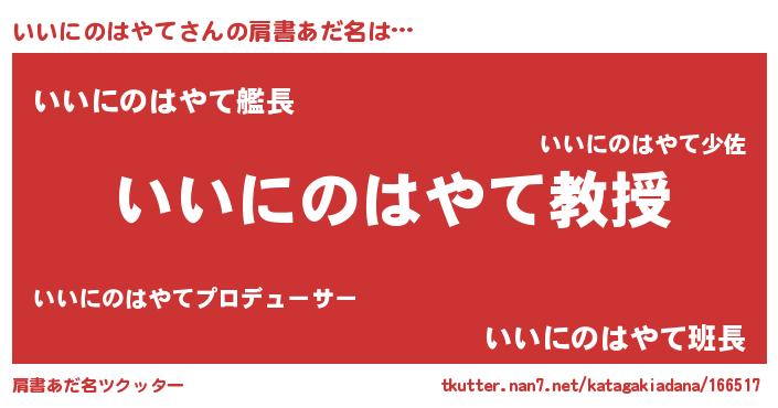 | 欧米人風あだ名 | 『ダニエルいいにのはやて』 |