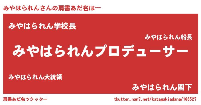 | 欧米人風あだ名 | 『アンジェラ・みやはられん』 |